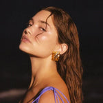 Discover timeless allure with a modern twist. The Virela Gold Earrings feature a vintage irregular shape crafted from 18k waterproof gold. Dual columns of silver add a touch of contemporary brilliance to their antique-inspired aesthetic.