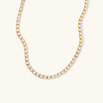 The Vela Diamond Tennis Necklace is here to deliver eternal allure and craftsmanship. Its 18K Gold brings an everlasting sparkle, while the ravishing Diamond Simulants  - provide that extra glitz and pizzazz to your look, making it a standout piece bound to grab everyone's attention!