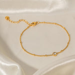 Elevate your style with the Aureen Gold Chain Anklet. Crafted from 18k PVD gold, this timeless piece features a dazzling diamond simulant for a touch of everyday luxury. Subtle yet eye-catching, it adds instant polish to any look.