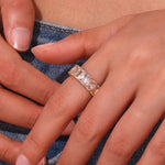 Glimmer with Avenia. An exquisite piece crafted from resilient 18K Gold accented by dazzling diamond simulants. A ring of perpetuating beauty and superior quality, tailored for those who admire the eternal glamour of a diamond's gleam.