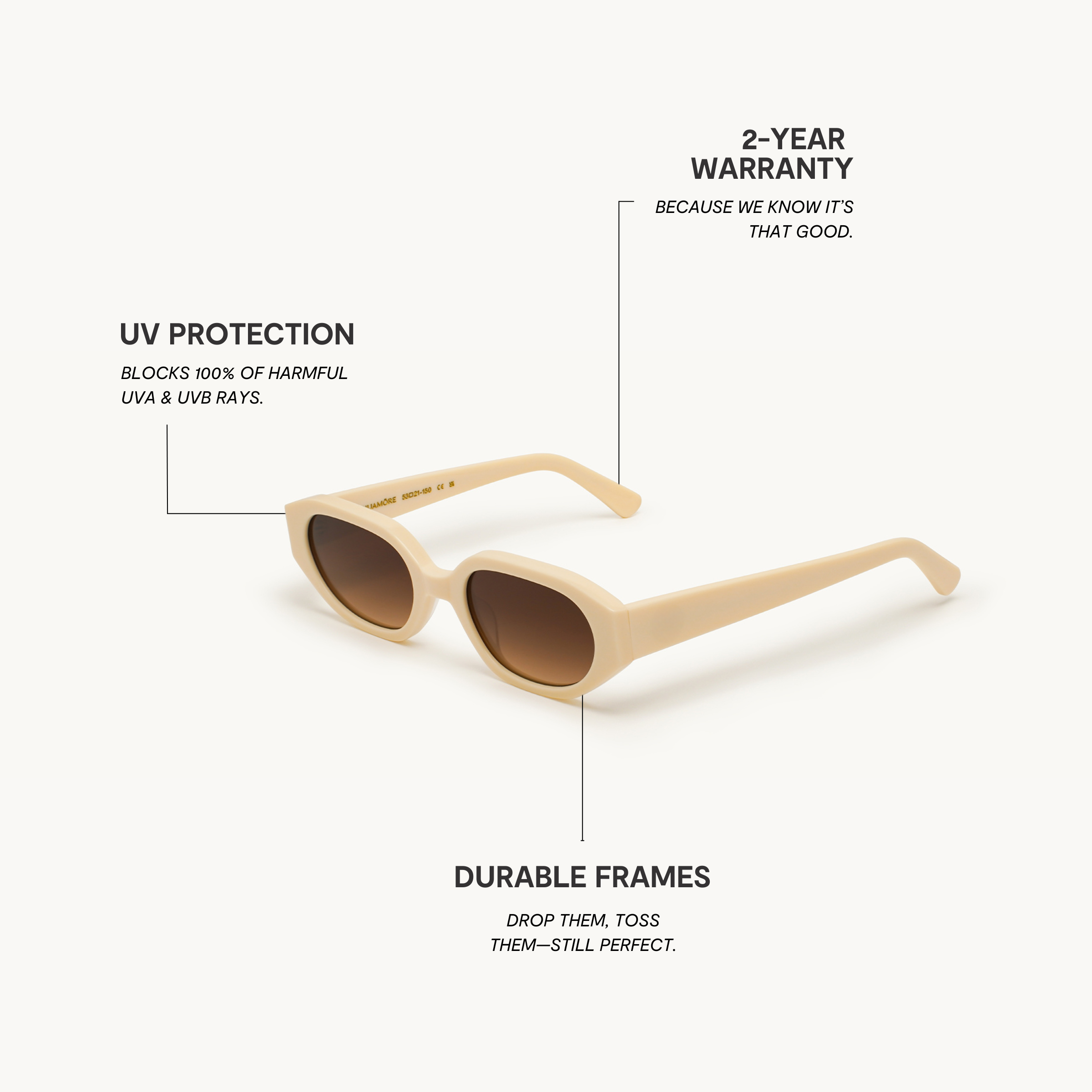 Inspired by the waves, made for the sun. These shades combine elegance with a hint of oceanic inspiration. Set with classic lenses for a classic look, let these frames transport you to the Amalfi Coast with their timeless and chic silhouette.