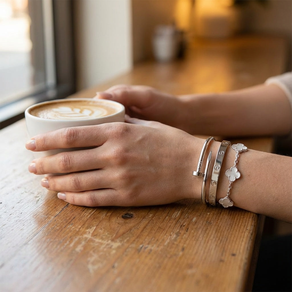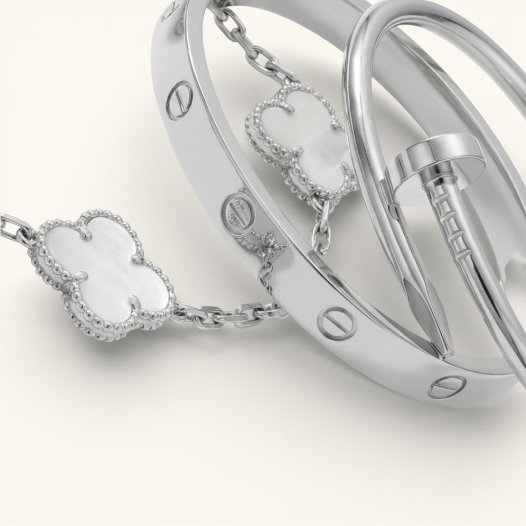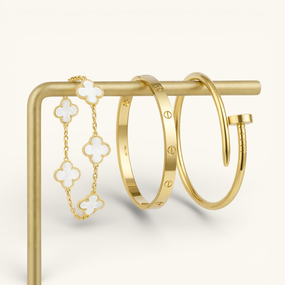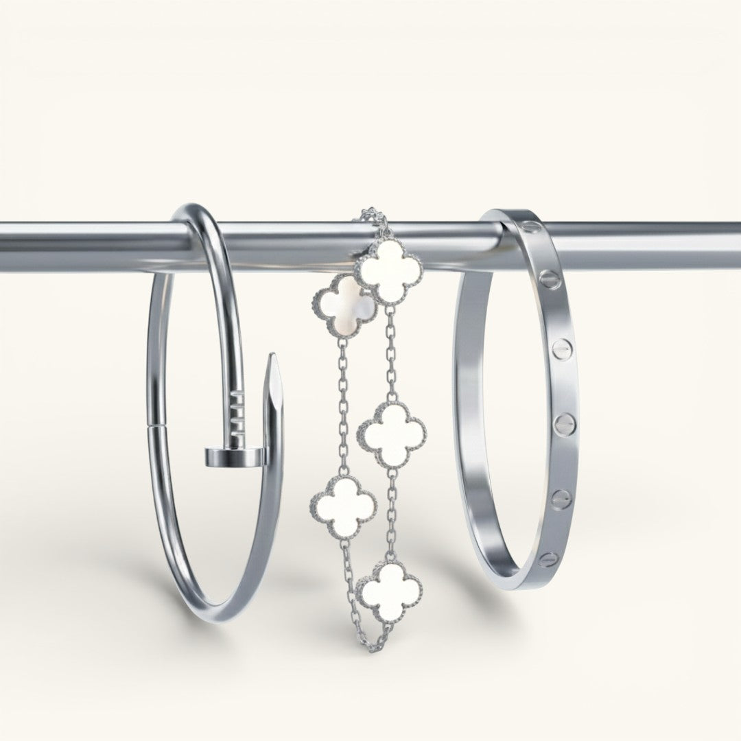• Elegance Nail Bracelet: A bold and modern statement piece with a sleek nail-inspired design (one size).
